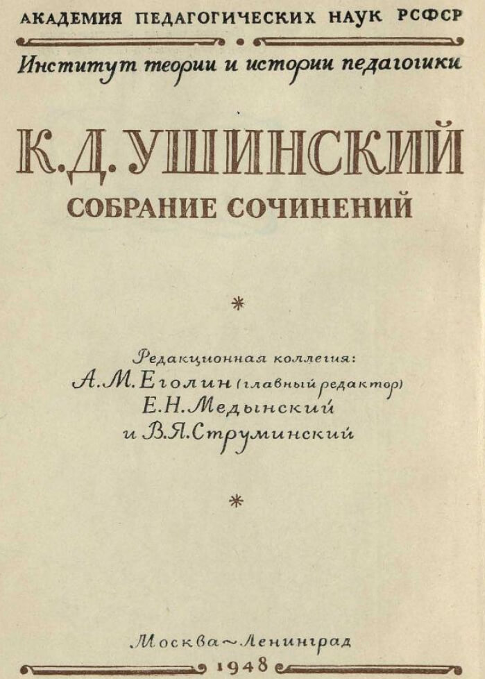 «Собрание сочинений Текст / К. Д. Ушинский…», К. Д. Ушинский, 1950. rusneb.ru