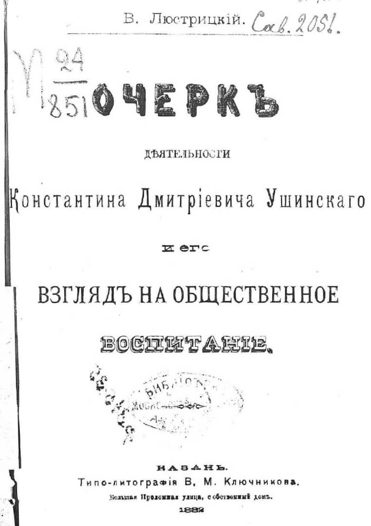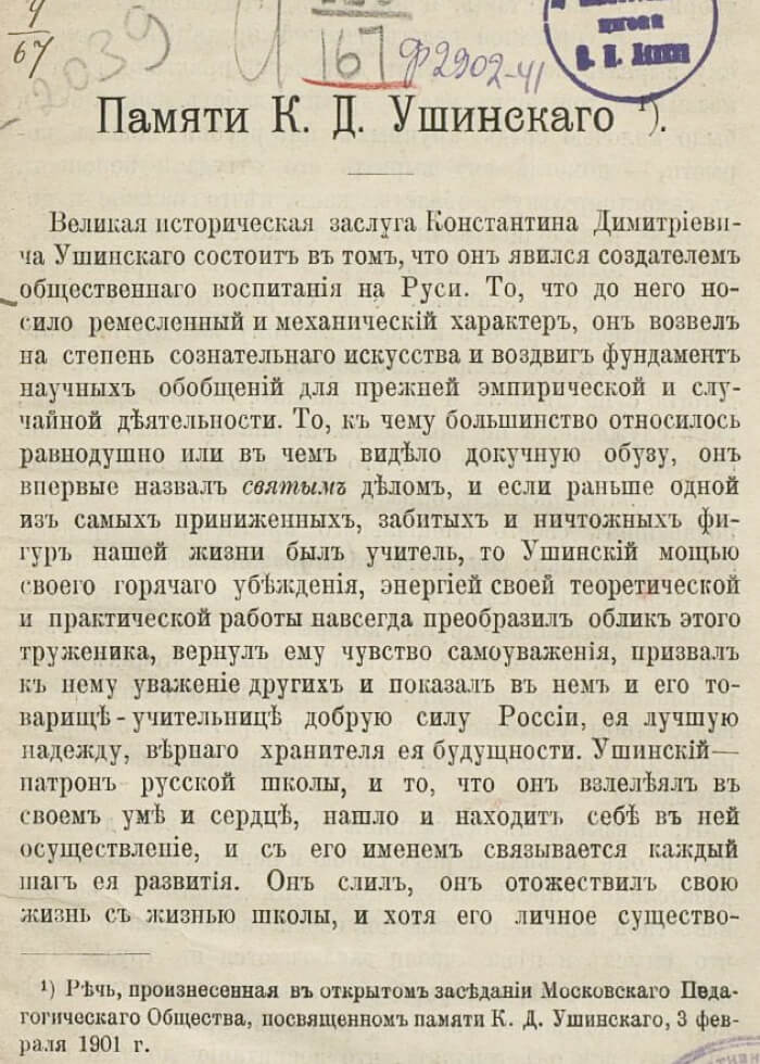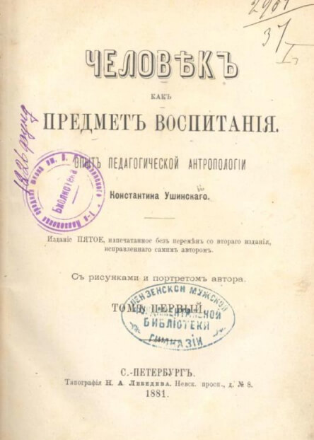 «О пользе педагогической литературы», К. Д. Ушинский, Санкт-Петербург, 1895. rusneb.ru